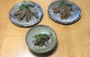 先日の徳島土産の新鮮な小魚の宴の締めくくり。 アジを捌いた後に残る『あれ』で...