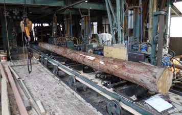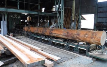 極寒の中、長尺材を連発して製材中