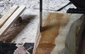 桧を製材中